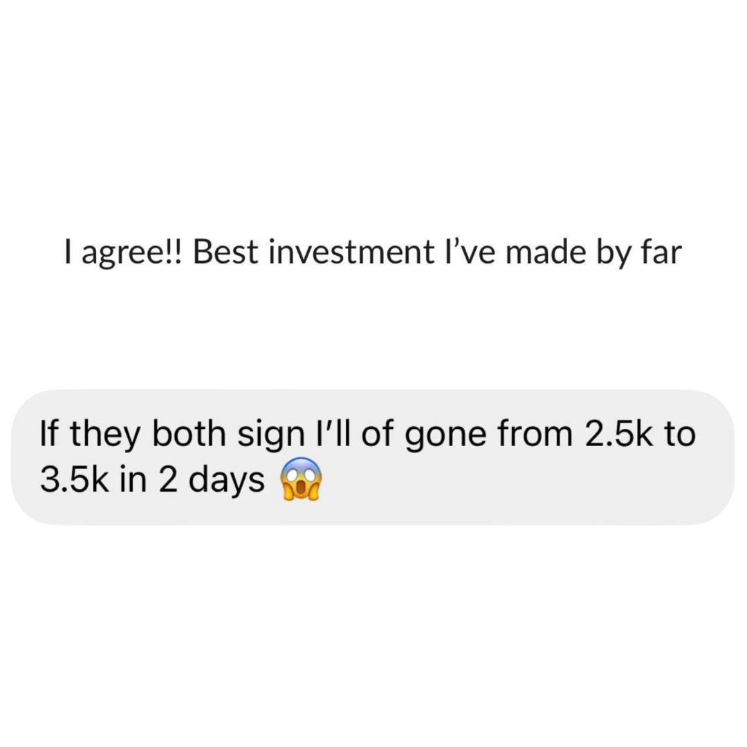 I used to feel so frustrated with the lack of leads I was getting from my Instagram, especially since I was supposed to be an ‘expert’ in helping my clients get results. I felt like a fraud because I couldn't even get my own business to where I wanted it to be. Hitting that £5K month mark felt so out of reach for me. And it pissed me off how much I was promised I’d get to £5K months if I just followed XYZ.